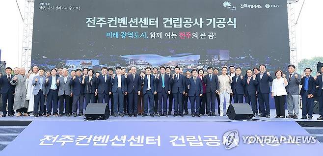 (전주=연합뉴스) 24일 전북 전주종합경기장 부지에서 글로벌 전시·컨벤션 인프라 구축을 위한 전주컨벤션센터 건립공사 기공식이 열리고 있다. 약 3천억원이 투입되는 전주컨벤션센터는 2028년까지 연면적 8만3천㎡에 지하 1층∼지상 4층 규모로 건립될 예정이다. 컨벤션센터는 1만㎡ 규모의 전시장과 2천명 이상 수용할 수 있는 대회의실, 중소회의실 22실 등을 갖춘다. 2025.9.24 [전주시 제공. 재판매 및 DB 금지]