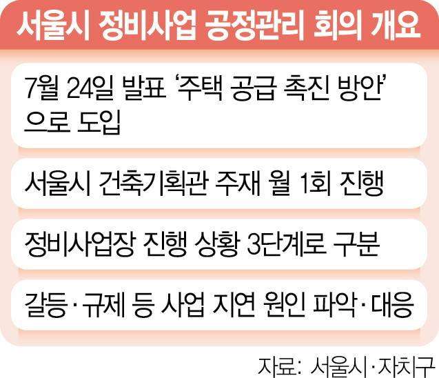 자치구의 한 관계자는 "서울시가 매달 자치구와 개별 정비사업장의 일정을 관리하기 위해 회의를 정기적으로 여는 것은 전례 없던 일"이라며 "신속한 정비사업 추진이 이뤄지도록 지원하려는 강력한 의지가 드러난다"고 평가했다.