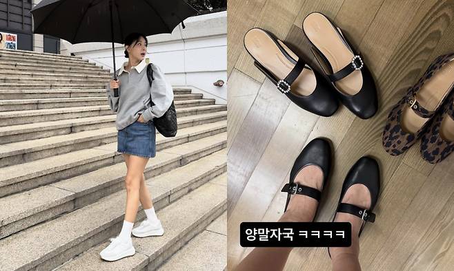 이와 함께 이지혜는 다양한 일상을 전했다. 그는 비 오는 야외에서 흰 카라와 흰 운동화로 포인트를 준 청치마 코디를, 여름의 시원함이 돋보이는 실내에서는 깔끔한 메리제인 단화와 블랙 나시를 활용한 코디를 뽐냈다. 그는 양말 자국까지 인증하는 열정을 자랑했다.