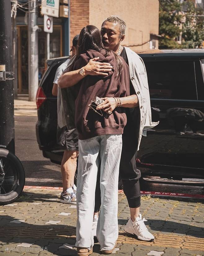 공개된 사진에는 부녀가 식당에서 다정하게 어깨를 맞대고 웃는 모습과, 거리에서 아빠가 딸을 꼭 안아주는 따뜻한 순간이 담겼다.