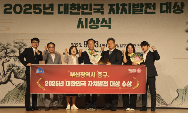 부산 중구는 지난 23일 열린 ‘2025 대한민국 자치발전 대상’ 시상식에서 기초자치단체 부문 수상의 영예를 안았다.