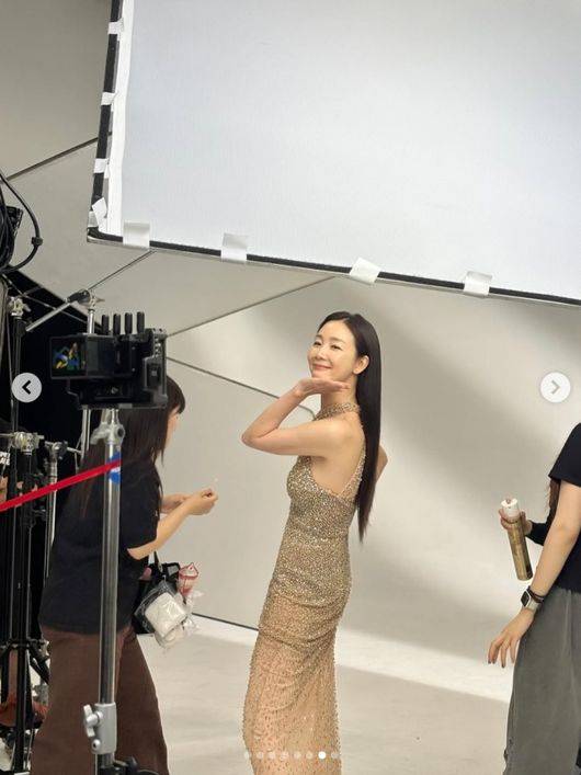공개된 사진에는 화보 촬영 중인 최지우의 모습이 담겨 있었다. 최지우는 반짝이는 금빛 드레스를 입고 카메라 앞에서 자연스럽게 포즈를 취하고 있었다. 어깨라인을 과감하게 드러내고 몸매가 보이는 드레스를 입고 우아한 자태를 뽐낸 최지우였다.