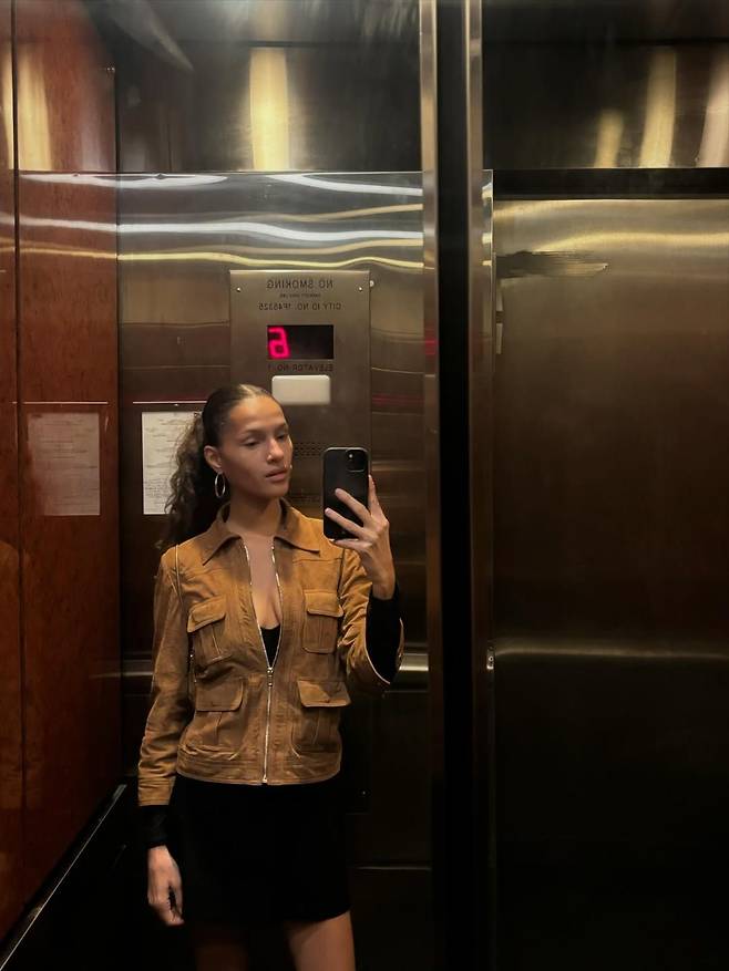 모델 아멜리에(@ameliekpf)는 포켓이 돋보이는 슬림한 실루엣의 스웨이드 재킷으로 다양한 변주를 주었습니다. 블랙 미니 드레스와 연출하면 클래식하고 모던한 인상을 주는 반면, 도트 패턴의 드레스와 매치했을 땐 발랄하고 귀여운 룩으로 둔갑하죠. 오답 없는 블랙 진과의 스타일링 역시 캐주얼하면서도 멋스러운 룩을 완성했습니다. 큼직한 레더 백을 더해 우아한 포인트를 잊지 않은 센스가 돋보이죠!