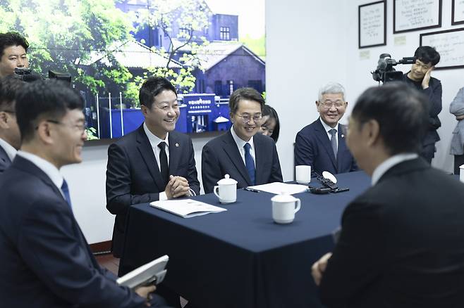 앞서 김동연 지사는 후헝화 충칭시장에게 "도지사와 도의회 의장이 함께 와서 손 붙잡고 이와 같은 협력과 외교를 같이한다고 하는 것은 아마 전례가 없는 일 아닌가 한다"면서 김 의장을 소개했고, 충칭시장은 감사의 뜻을 표했다.