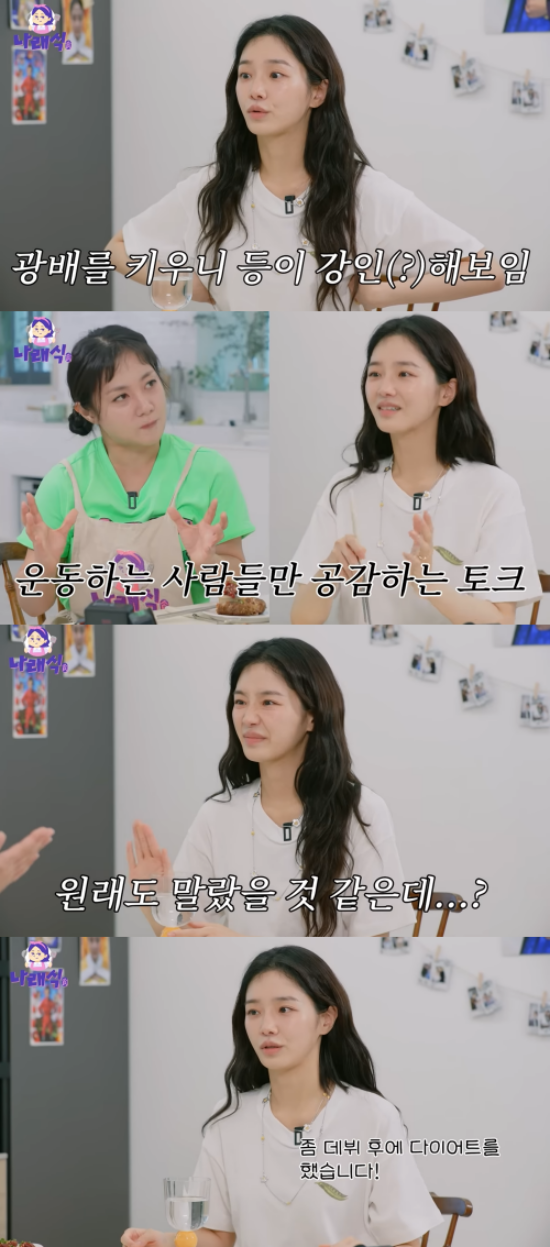 이날 박나래는 박규영에게 "하루 먹는 루틴이 어떻게 되냐"고 물었고, 박규영은 "일단 일어난다. 아침은 안 먹는다. 커피를 마시고 운동한다. 웨이트한다"고 답했다.