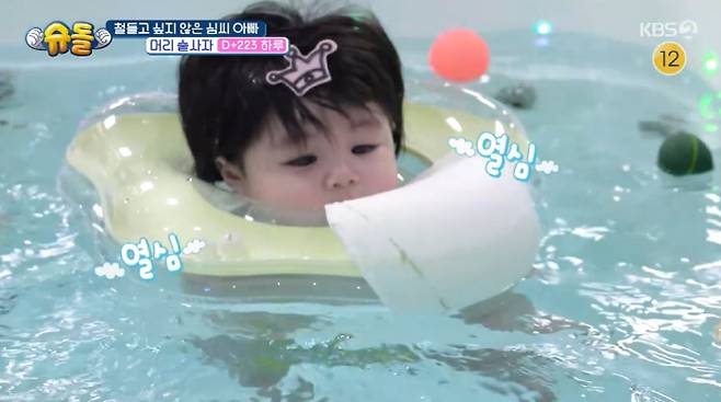 깊은 물속에 들어가기에 심형탁은 잔뜩 긴장했지만 하루는 물에 들어가자마자 본능적으로 발차기를 하면서 금새 수영장에 적응했다.