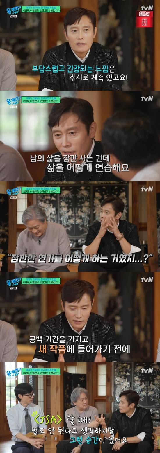 '유퀴즈'에서 이병헌도 새로운 작품이 들어갈 때마다 연기 부담감을 느낀다고 고백했다.