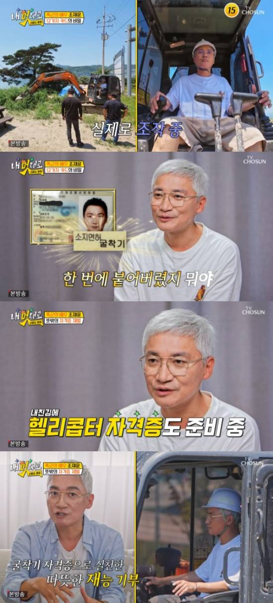 조재윤은 "내가 써먹어 볼 일이 있을까 해서 시작했던 게 굴착기 자격증이었는데 한 번에 붙었다. 자격증을 취득하다 보니까 재밌더라"라고 전했다.