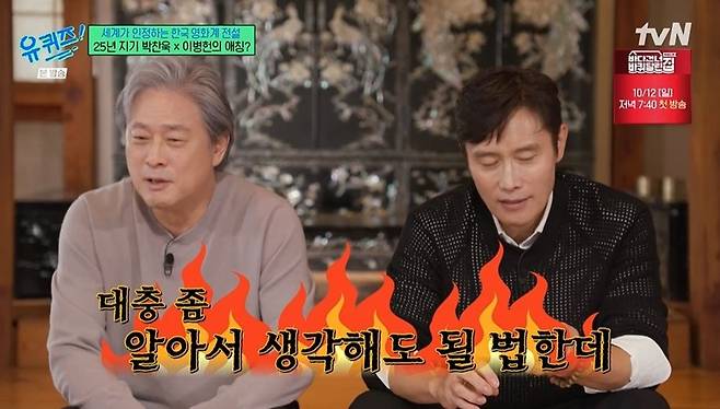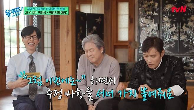 24일 방송된 tvN '유 퀴즈 온 더 블럭'(이하 '유퀴즈')에서는 영화 '어쩔 수 없다' 감독 박찬욱과 배우 이병헌이 출연했다.