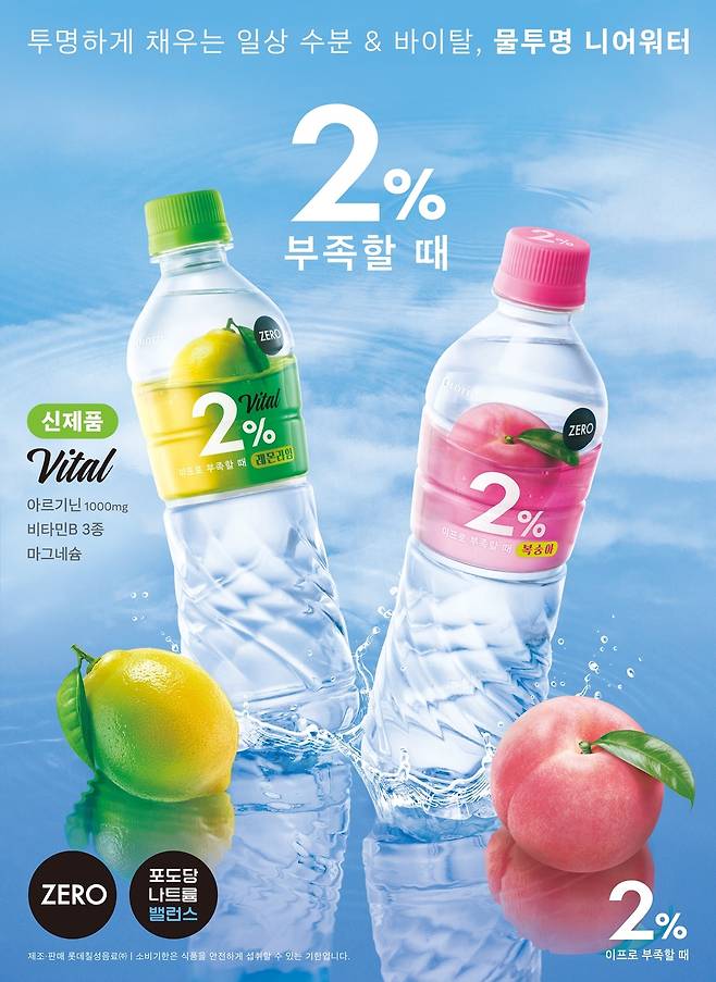앞서 이달 중순 제로 칼로리로 리뉴얼된 ‘2% 부족할 때 복숭아’가 출시됐다. 과일색 패턴을 입힌 라벨과 용기 하단 물결무늬를 삽입한 페트병을 적용했다. 일상 속 활력이 필요한 소비자를 타깃으로 아르기닌 1000mg과 비타민B군 등이 함유된 신제품 ‘2% 부족할 때 바이탈 레몬라임’도 출시했다.