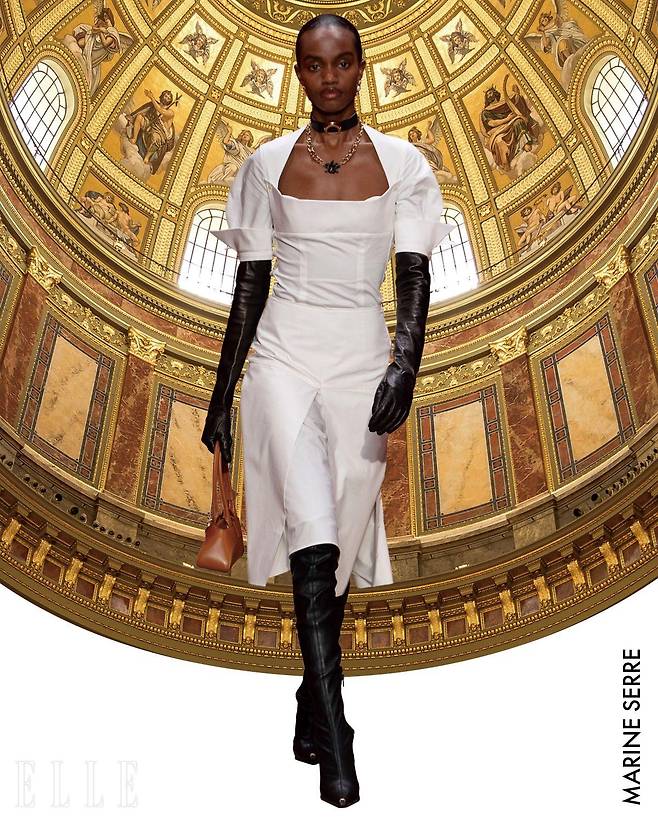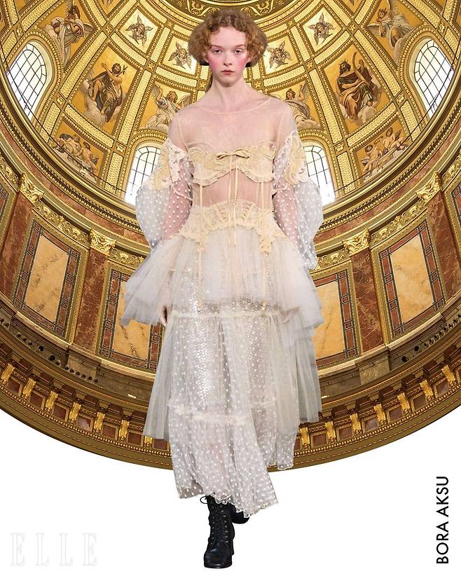 이런 역사적 사실을 담은 빅토리언 스타일을 우리는 영화 속에서도 자주 볼 수 있는데, 지난해 개봉한 영화 〈가여운 것들 Poor Things〉에서는 배우 엠마 스톤이 퍼프 슬리브와 하이넥 블라우스, 부풀린 시폰 드레스 등 빅토리아 무드 특유의 장식적 요소를 과감하게 표현한 룩을 입고 등장했으며, 이는 패션 신에서도 크게 회자됐다. 또 넷플릭스 인기 시리즈 〈브리저튼 Brigerton〉에서는 고전적이고 사랑스러운 분위기가 강조됐는데, 이는 ‘레전시코어(Regencycore)’ 라는 새로운 패션 키워드를 탄생시키기도 했다. 그리고 이번 시즌, 빅토리아 무드가 또 한 번 패션 신을 장악했다. 가장 먼저 디올 컬렉션에서 빅토리아 시대의 영향을 강하게 느낄 수 있었다. 코르셋과 레이스, 러플을 컬렉션 곳곳에 활용하고, 크림과 블랙 컬러를 메인으로 활용해 아름답고 고전적인 분위기를 완성했다. 여기에 티셔츠와 가죽 스커트 같은 아이템을 매치해 현대 감각을 주입한 것도 특징이다. 한편, 무게감 있는 빅토리아풍의 패션을 고스란히 담아낸 맥퀸 컬렉션에서는 션 맥기르의 재능을 다시 한 번 엿볼 수 있었다. 드라마틱한 하이넥 칼라를 중심으로 부풀린 실루엣과 레이어드, 고딕 자수 디테일까지 담아낸 컬렉션은 빅토리아 코드를 완벽히 구현하며 화려하고 근엄한 시대의 아우라를 고스란히 펼쳐냈다.