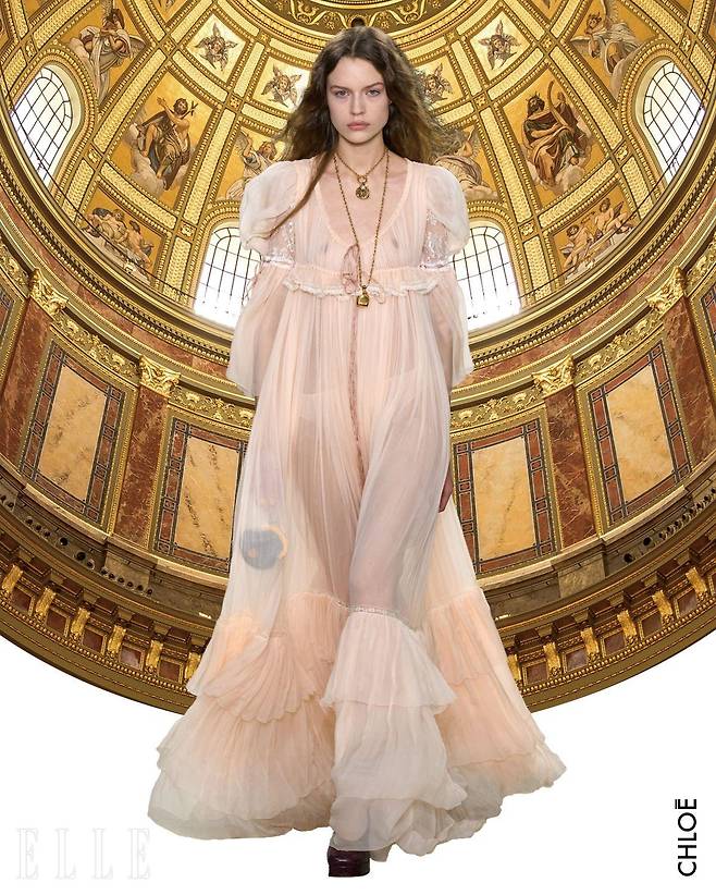 샤넬 역시 레이스 라운드 칼라를 컬렉션에 적용해 클래식한 트위드 룩에 빅토리아 무드를 더했다. 그런가 하면 앞에서 언급한 ‘레전시코어’ 가 강하게 떠오른 하우스도 있다. 크리에이티브 디렉터 셰미나 카말리의 합류로 주목받는 끌로에. 하늘하늘한 레이스와 시폰, 실크 소재를 활용한 몽환적인 롱 드레스를 대거 선보였다. 발렌티노 쇼에서도 알레산드로 미켈레 특유의 로맨티시즘과 화려함 속에 빅토리아 코드가 빠지지 않고 등장했다. 그 밖에 페티코트 드레스에 과감한 로 라이즈를 적용한 생 로랑, 매혹적인 레드 컬러 벨벳 드레스를 선보인 버버리, 승마 코드를 더한 코트 세트업을 보여준 랄프 로렌, 최근 풍선처럼 부풀린 실루엣을 즐기는 마크 제이콥스까지. 빅토리아 시대의 화려함은 디자이너들의 각기 다른 해석을 통해 이번 시즌 트렌드로 자리매김했다. 찬바람과 함께 빅토리아 시대의 낭만이 돌아왔다. 현대적인 해석을 보여준 이번 시즌 디자이너들의 아이디어를 참고해, 스타일링에 빅토리아 무드를 한 스푼 넣어보는 건 어떨는지. 조금의 도전 정신만 있으면 충분히 가능할 듯.