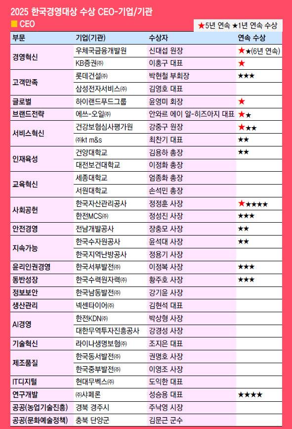 대한민국 산업-행정을 빛내는 대표 CEO-기업/기관 한자리에