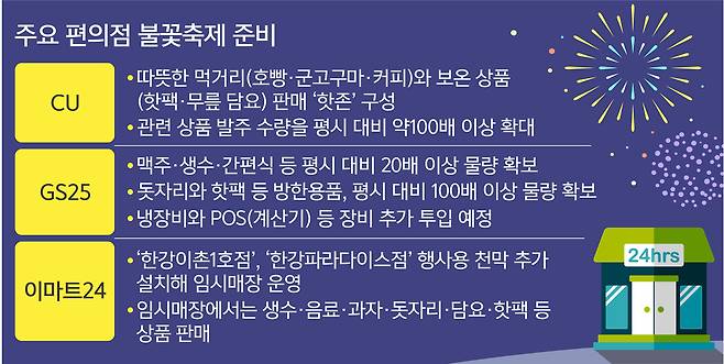 ‘불꽃 명당’ 구름인파 잡아라… 편의점 발주 100배 늘어