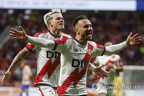 epa12403348 Rayo's Alvaro Garcia (R) celebrates after scoring the 2-2 goal during the Spanish LaLiga soccer match between Atletico Madrid and Rayo Vallecano, in Madrid, Spain, 24 September 2025. EPA/Juanjo Martin