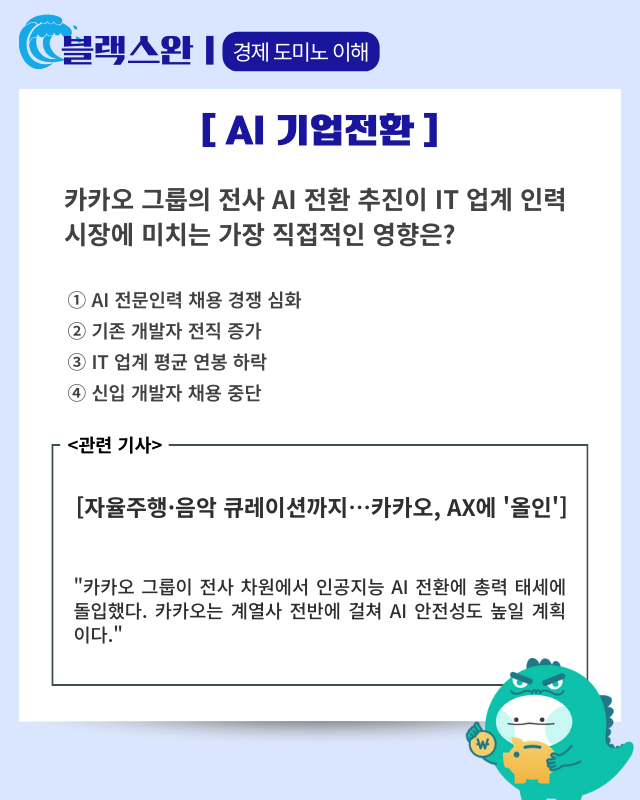 - 핵심 요약: 카카오 그룹이 전사 차원에서 인공지능(AI) 전환에 총력 태세에 돌입하며 자율주행부터 음악 큐레이션까지 다양한 AI 서비스를 선보였다. 카카오모빌리티는 AI가 교통 정보를 종합해 최적의 주행 경로를 계획하는 ‘AI 플래너’를 소개했으며 이는 다양한 변수를 종합적으로 고려해 인간처럼 유연하고 안전한 판단을 내린다고 설명했다. 카카오엔터테인먼트는 음원 스트리밍 서비스 멜론에 탑재한 AI 음악 큐레이션 서비스 ‘DJ 말랑이’를 공개했는데 이는 빅데이터와 이용자의 감상 이력을 종합해 취향에 맞는 음악을 재생한다. 카카오뱅크(323410)는 생성형 AI을 악용한 ‘프롬프트 어택’ 탐지 기술을 통해 AI에 회사의 정보를 캐내거나 안전 규칙을 우회하도록 유도하는 공격을 방어하는 시스템을 구축했다고 발표했다. 카카오는 계열사 전반에 걸쳐 AI 안전성과 신뢰성을 검증할 수 있는 AI 가드레일 모델 ‘카나나 세이프가드’를 일부 계열사 AI 서비스에 적용하는 방안도 검토하고 있다.