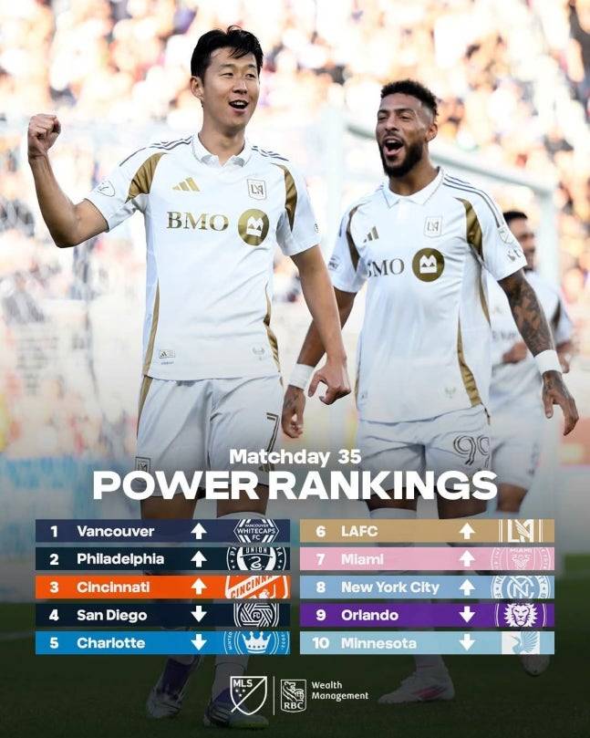 24일(한국시간) MLS 사무국이 발표한 2025시즌 35라운드 파워랭킹에서 LAFC는 6위에 올랐다.