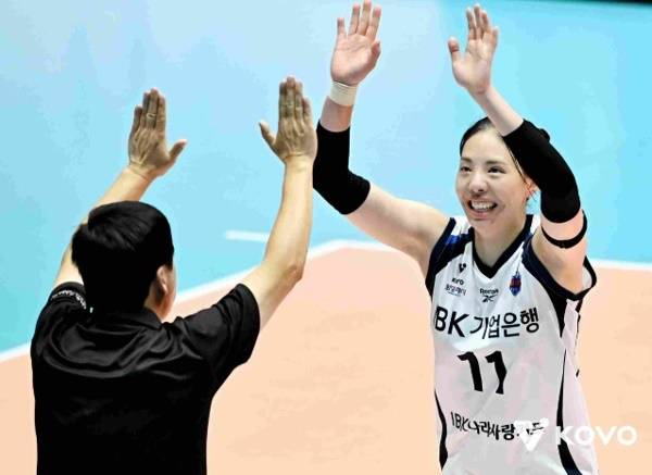 김호철 감독이 이끄는 IBK기업은행 알토스는 24일 여수 진남 체육관에서 열린 2025 여수·NH농협컵 프로배구대회 한국도로공사 하이패스와의 조별리그 2번째 경기에서 세트스코어 3-1(25-10, 25-22, 19-25, 25-20)로 승리했다. 22일 정관장 레드스파크스를 꺾고 대회 첫 승을 따냈던 기업은행은 도로공사마저 제압하고 2연승으로 B조 1위를 확정하며 27일에 열리는 준결승에서 A조 2위와 맞붙게 됐다.
