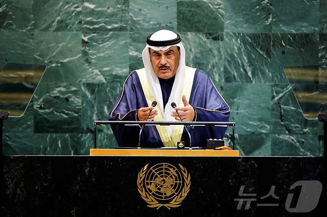 (뉴욕 로이터=뉴스1) 권준언 기자 = 셰이크 사바 알 칼레드 알 사바 쿠웨이트 왕세자가 24일(현지시간) 미국 뉴욕 유엔 본부에서 열린 제80차 유엔 총회에서 연설하고 있다. 2025.09.24.