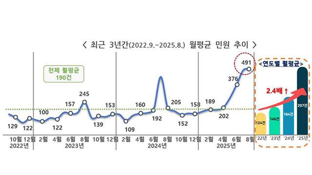 권익위는 최근 3년간 숙박업소 관련 민원은 모두 6천 839건, 올해 월평균은 297건으로 2022년 124건 대비 2.4배 늘었다고 밝혔습니다.