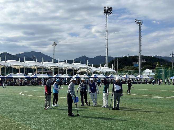 고성군이 가을 햇살 아래 전국 그라운드골프 동호인들의 뜨거운 승부 열기로 물들었다.