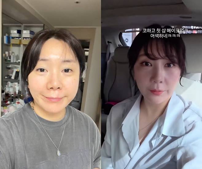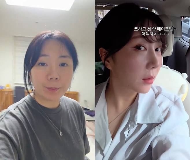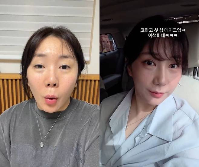 영상 속 그는 문구를 통해 "코하고 첫 샵 메이크업. 어색하네"라고 전하며 다양한 각도로 수술 후 달라진 얼굴을 보여줬다.