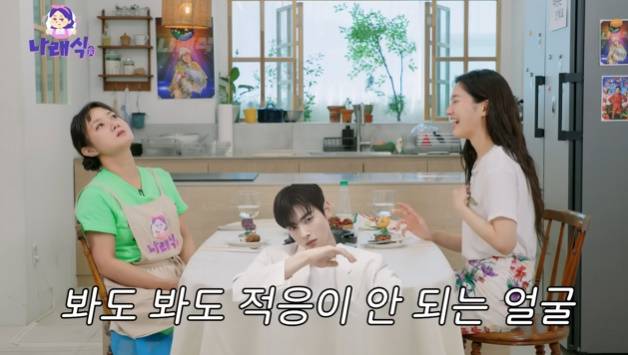 박나래는 "그렇긴 하다. 내가 진짜로 차은우 씨가 정말 아주 찰나의 순간 막 유명하지 않았을때가 있었다. 그 순간 제가 같이 웹예능을 찍었다. 둘이 얼굴을 마주보고 있는걸 찍자는거다. 딱 봤는데 뭐지? 싶더라"라고 공감했고, 박규영도 "그러니까 '뭐지?' 싶다니까요"라고 고개를 끄덕였다.