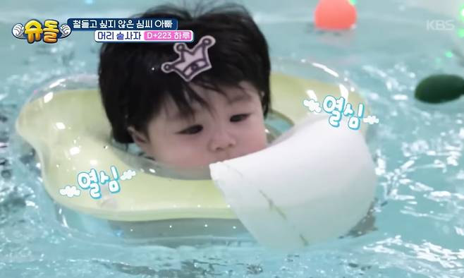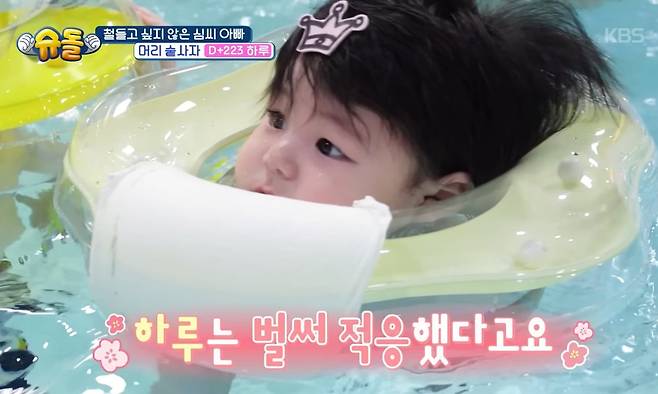 지난 24일 방송된 KBS2 '슈퍼맨이 돌아왔다(이하 '슈돌')'에서는 생후 223일 차에 접어든 심형탁의 아들 하루의 첫걸음마 연습과 첫 수영을 하는 모습이 공개됐다.