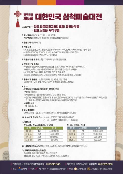 결과는 11월 11일 삼척시청 누리집과 삼척미술협회 카페를 통해 발표된다.