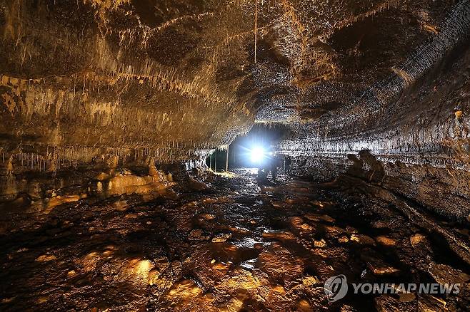 (제주=연합뉴스) 박지호 기자 = 국가유산 방문의 해를 맞아 제주시 구좌읍 월정리 용천동굴이 25일 제주도 세계유산본부 안내로 언론에 특별공개됐다.