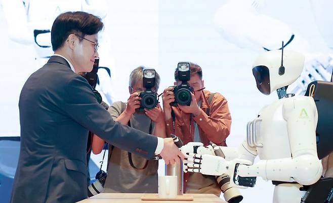 휴머노이드 로봇 시연 참관하는 김정관 장관