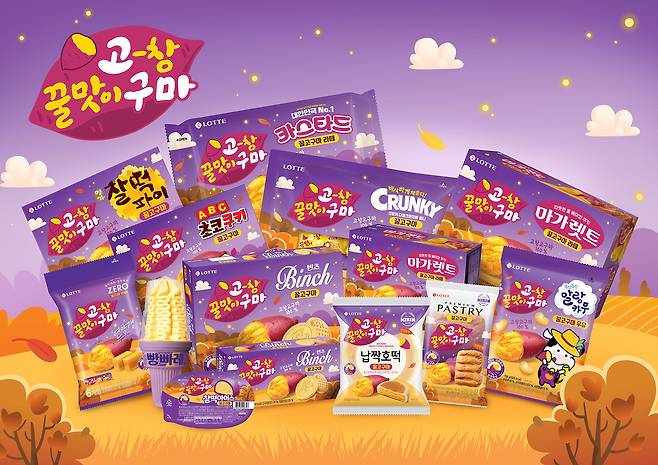 롯데웰푸드가 전북 고창군과 협업한 '맛있는 대한민국 상생 로드 2탄'으로 가을 시즌 한정판 제품인 '고창 고구마 시리즈'를 선보였다.