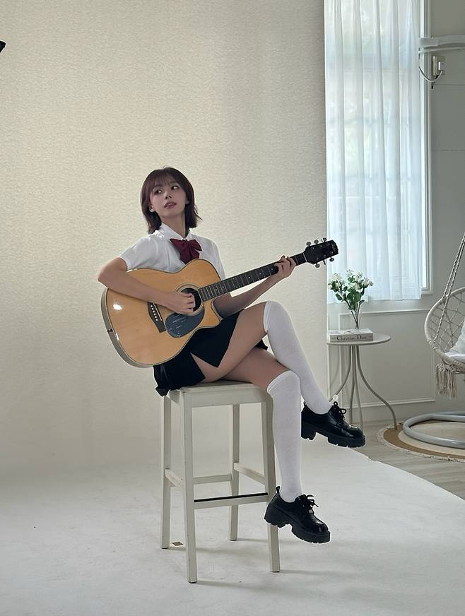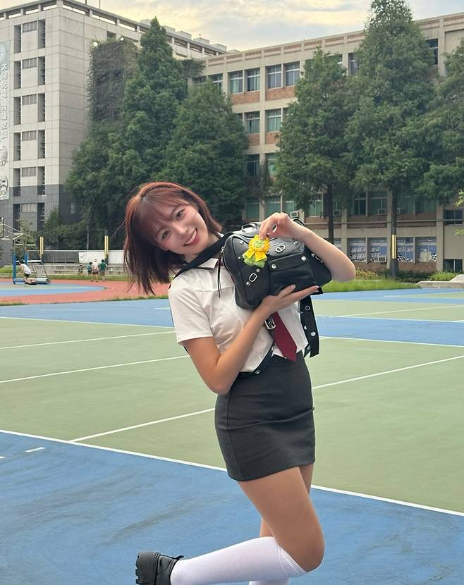 운동장을 배경으로 자연스럽게 걷거나 환하게 웃으며 포즈를 취한 사진에서는 사랑스럽고 건강미 넘치는 모습이 담겼다. 블랙 백팩과 하얀색 니삭스, 액세서리가 소녀미와 트렌디함을 동시에 선사했다.