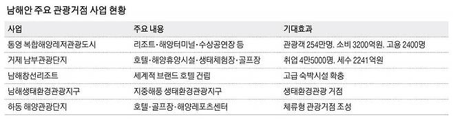 경남도 관계자는 "남해안 관광거점 사업은 단순히 관광산업 확대에 그치지 않는다"며 "산업과 관광, 문화와 생활을 잇는 종합 프로젝트로 장기적으로는 수도권에 대응하는 남해안 경제권의 중심축을 구축하겠다는 비전을 담고 있다"고 말했다.