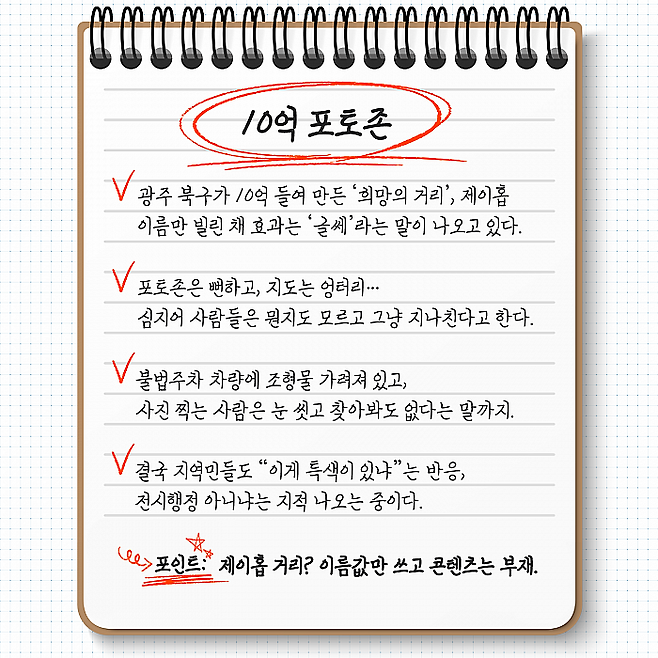 ▶ 결국 지역민들도 “이게 특색이 있냐”는 반응, 전시행정 아니냐는 지적 나오는 중이다.
