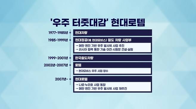 당시 고 정주영 현대그룹 명예회장의 지시에 따라 현대정공은 국내 기업 가운데 최초로 지난 1990년대 우주 발사체 사업을 추진했는데요.