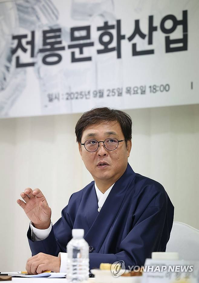 (서울=연합뉴스) 최휘영 문화체육관광부 장관이 25일 서울 성동구 성수동 에스팩토리에서 열린 전통문화산업 청년 기업가 간담회에서 발언하고 있다. 2025.9.25 [문화체육관광부 제공.재판매 및 DB 금지]