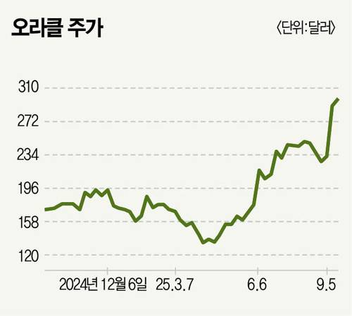 클라우드 인프라 서비스를 제공하는 오라클이 빛을 보고 있다. 한동안 인공지능(AI) 시대 주인공인 엔비디아와 빅테크에 밀려 큰 관심을 못 받았지만 최근 분위기는 사뭇 다르다. 빅테크를 중심으로 멀티 클라우드 전략(여러 클라우드를 함께 쓰는 형태)이 확대되며 클라우드 수요가 폭증하면서 조연에서 주연으로 올라섰다. 주가도 고공행진이다. 8월 1일 244달러였던 주가는 9월 17일 301달러까지 올랐다. 9월 10일에는 단숨에 320달러를 넘어섰다. 최근 상승분을 일부 반납하긴 했지만 시장에서는 추가 상승도 가능하다고 내다본다. 미국 증권사 스티펠은 오라클 목표주가를 이전 대비 100달러 올린 350달러로 제시했다. 스티펠은 “수주 잔고가 몇 분기 내 5000억달러를 넘어설 것으로 본다”고 설명했다. UBS도 80달러 상향 조정한 360달러 목표주가를 내놨다. 뱅크오브아메리카(BofA)는 목표주가를 73달러 조정해 368달러로 올렸다. BofA는 “오라클은 빠르게 성장 중인 AI 인프라 시장에서 확실한 존재감을 드러내고 있다”고 강조했다.