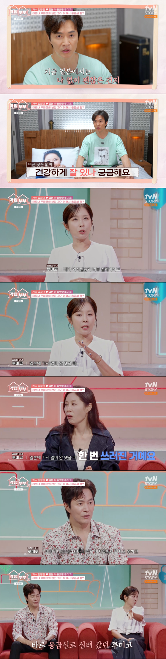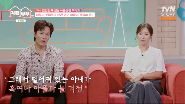 김정민은 "늘 걱정이다. 일본에 가면 아프지 않을지 걱정이 크다"고 말하며 아내를 향한 깊은 염려를 드러냈다.