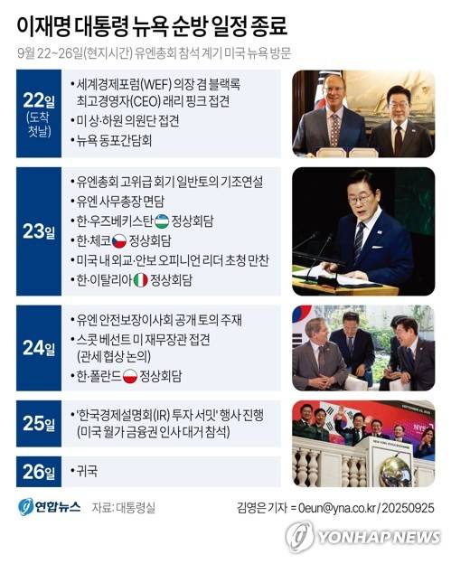[그래픽] 이재명 대통령 뉴욕 순방 일정 종료
