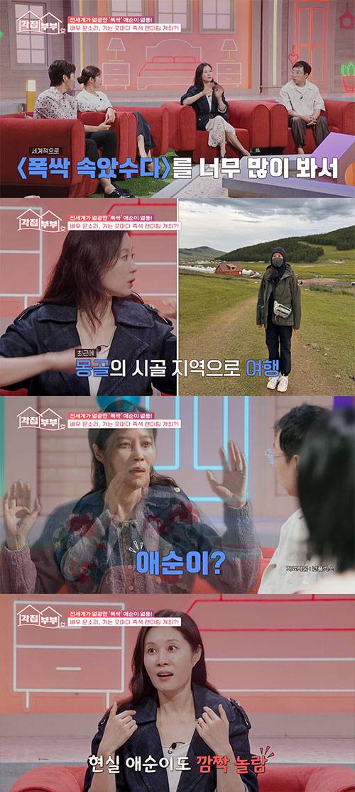 문소리는 "몽골 시골 게르에 갔는데 현지 가족들이 저를 보더니 '애순이?'라고 하더라. 저도 너무 놀라서 같이 사진을 찍었다"며 놀라운 경험을 전했다.