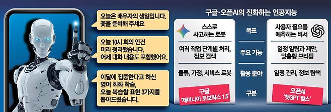 이처럼 인간의 질문이나 명령을 기다리지 않고 스스로 사고하고 움직이는 AI 시대가 성큼 다가왔다. AI를 선도하는 두 기업인 구글과 오픈AI는 24일(현지시간) 각각 물리적 로봇 AI 모델과 디지털 비서 기능을 공개하며 AI가 '능동적 동반자'로 진화하고 있음을 보여줬다.
