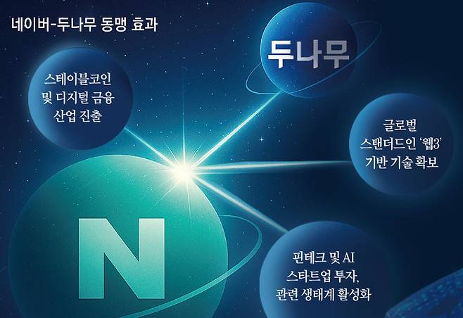 네이버가 업비트 운영사인 두나무를 계열사로 편입해 스테이블코인 등 디지털 금융시장에 본격적으로 뛰어들 채비를 갖췄다.