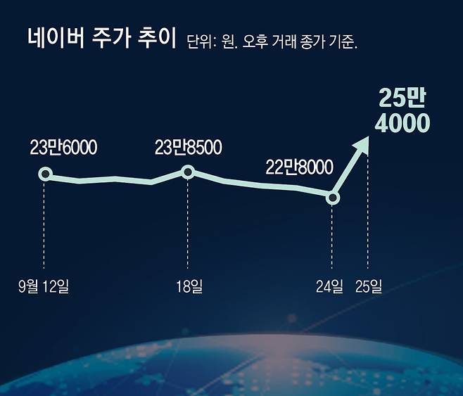 한편 네이버의 두나무 자회사 편입 추진 소식이 전해지면서 이날 네이버 주가는 전거래일보다 11.4% 오른 25만4000원으로 장을 마감했다. 한편 비상장주식 거래 플랫폼 증권플러스 비상장에서 거래되는 두나무의 주가는 10% 넘게 하락했다.