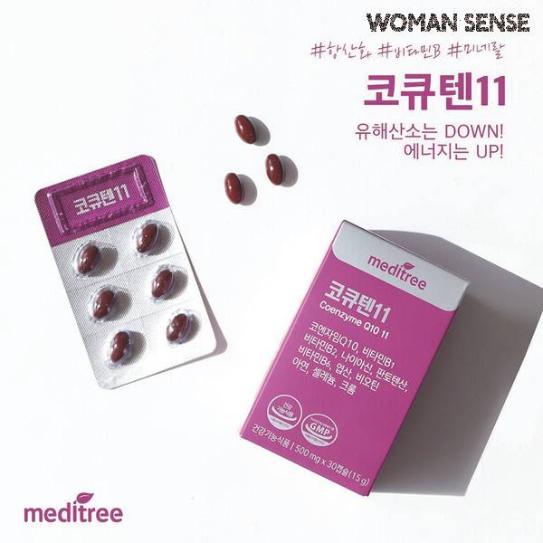 2 메디트리 코큐텐11 코엔자임 Q10을 주성분으로 항산화 작용을 돕고 혈압 건강을 챙겨주는 건강기능식품. 하루 한 알 복용으로 충분. 오메가-3, 비타민 E와 함께 복용하면 흡수율을 도와 궁합이 좋다.