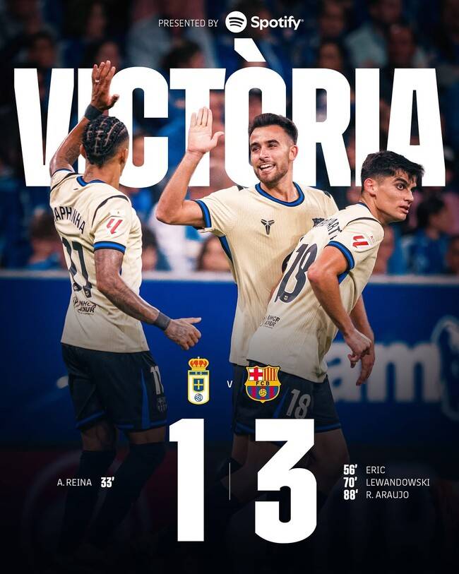 바르셀로나는 26일(한국시간) 스페인 오비에도에 위치한 에스타디오 누에보 카를로스 타르티에레에서 열린 2025-26시즌 라리가 6라운드에서 레알 오비에도에 3-1로 승리했다. 이번 승리로 바르셀로나는 승점 16 (5승 1무)로 선두 레알 마드리드를 승점 2점 차로 추격했다.