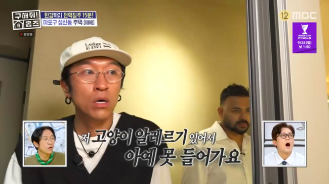 복도를 따라 들어와 침실까지 둘러본 상황. 갑자기 빽가는 “촬영하기 전에 혹시 여기 고양이 있는 거 아니죠?”라고 물었다. 제작진이 있다고 하자 빽가는 “있어요? 저 못 들어가요. 저 알레르기 있어서 아예 못 들어간다”라며 황급히 밖으로 나갔다.