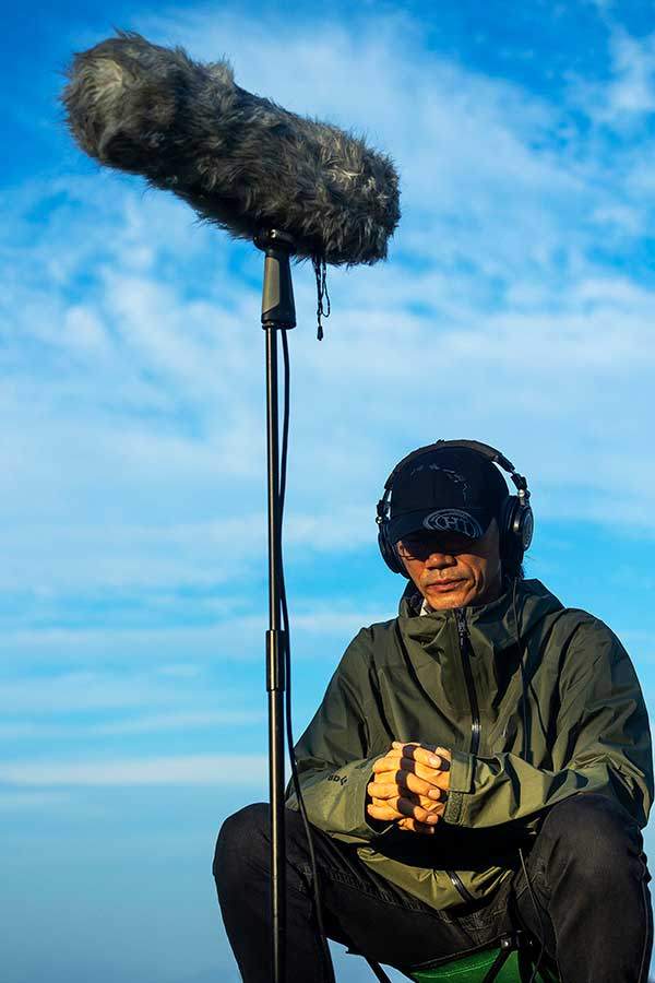 정만영 작가가 소리 채집에 사용하는 장비들은 여럿이다. 보통 어깨에 메는 커다란 가방 두 개에 나누어 넣고 다닌다. 그중 가장 무겁고 큰 부피를 차지하는 건 '붐마이크'다. 여기서 '붐'은 마이크가 달려 있는 막대를 의미한다. 붐마이크의 핵심인 마이크는 작은 막대 모양이다. 막대에 '블림프'라는 덮개를 씌우고 그 위에 털로 이뤄진 '윈드 쉴드'를 입힌다. 블림프와 윈드 쉴드 둘 다 마이크에 바람 소리가 섞여 들어가는 걸 막는다. 녹음하기 전 윈드 쉴드의 꼬인 털을 풀어 줘야 좀 더 효과적으로 녹음을 할 수 있는데, 이를 위한 전용 빗도 있다. 야외에서 붐마이크는 멀리서 들리는 소리를 채집할 때 쓴다.