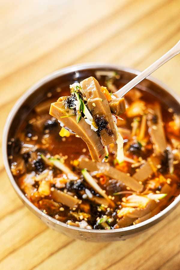 경상도에서는 시래기를 '시락'이라고 부른다. 그러니까 시락국밥은 시래기국밥이다. 얼큰하고 시원한 보통 이상의 국밥이라고 할 수 있는데, 이 집의 가장 큰 특징은 가격에 있다. 국밥 한 그릇에 5,000원이다. 그외 이 집의 여러 메뉴 중 가장 비싼 것은 잡채밥으로 8,000원이다. 호계시장에서 가장 가성비 좋은 식당이라고 할 수 있다. 시락국밥에는 고기가 들어 있지 않아 심심한 편이다. 뭔가 부족하다면 묵밥을 시켜도 된다. 이렇게 두 그릇 먹어도 돈 1만 원이 넘지 않는다. 새벽부터 아침 식사를 먹으러 오는 현지인이 많다.