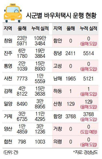 경남도에서는 바우처 택시 운영 주체가 각 지자체라 효율성을 강제하기 어렵다는 입장이다.